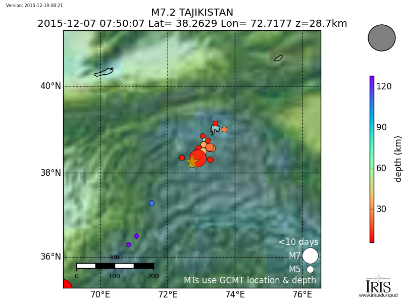 Aftershocks for MO 7.2 TAJIKISTAN |