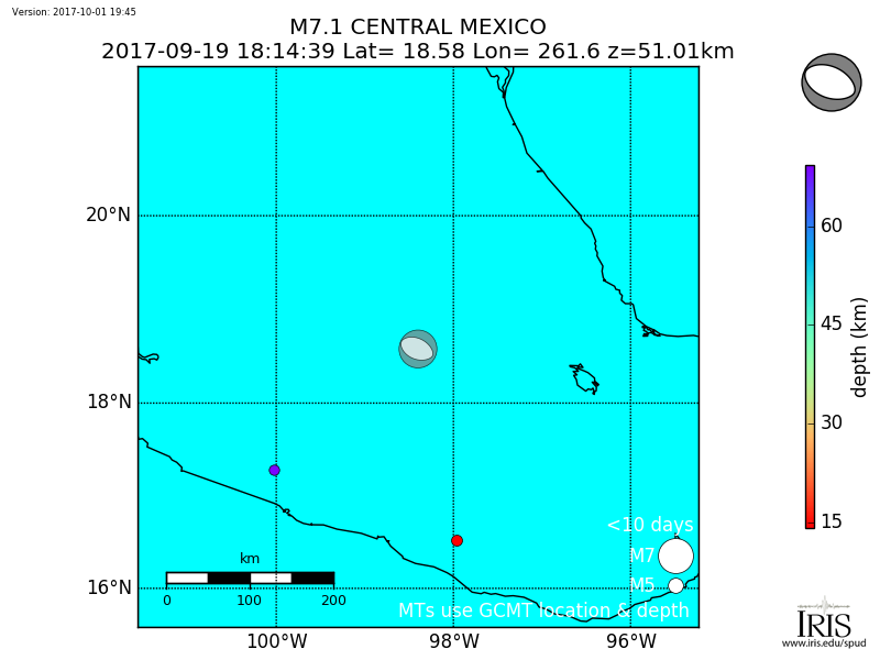 Aftershocks for Mww 7.1 CENTRAL MEXICO |