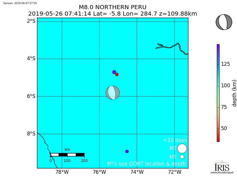 Aftershocks for Mww 8.0 NORTHERN PERU |