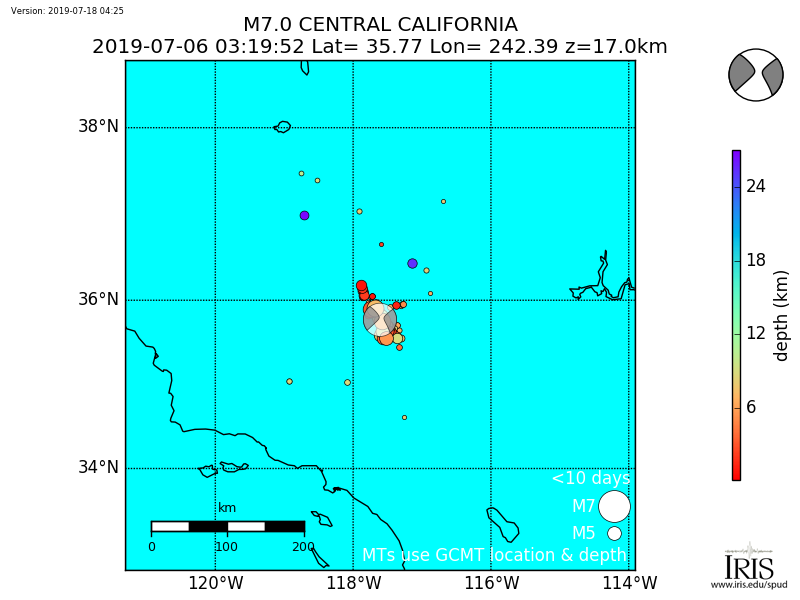 Aftershocks for Mh 7.1 CENTRAL CALIFORNIA |