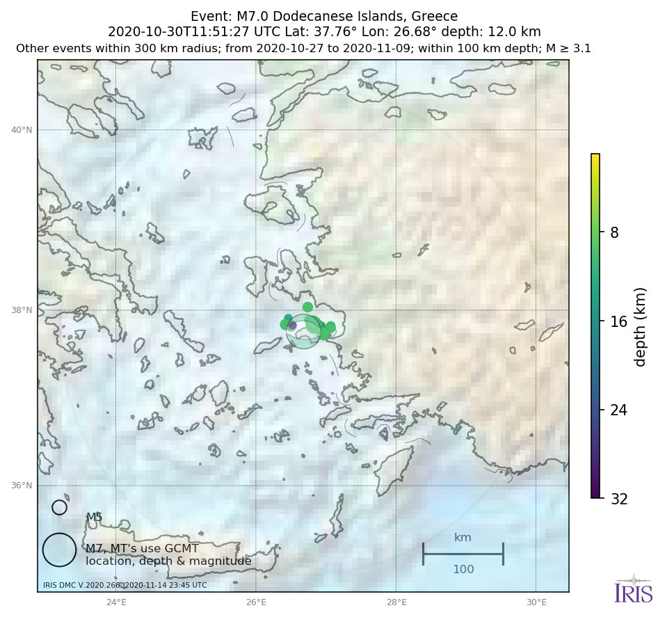 Aftershocks for mww 7.0 DODECANESE ISLANDS, GREECE |