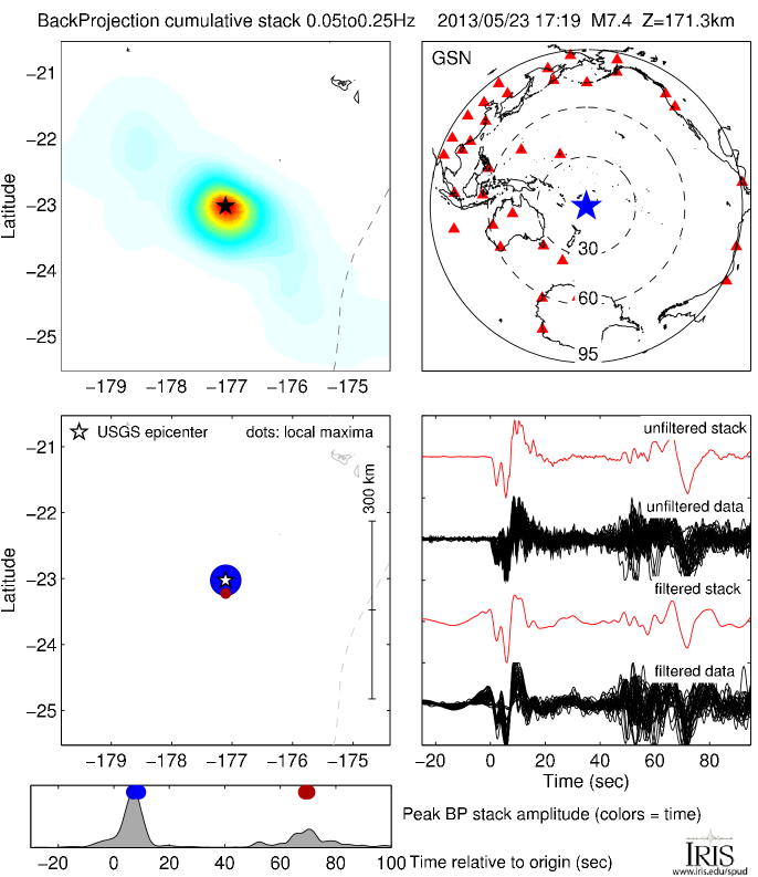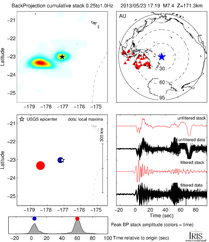 Back Projections for MI 7.4 SOUTH OF FIJI ISLANDS |
