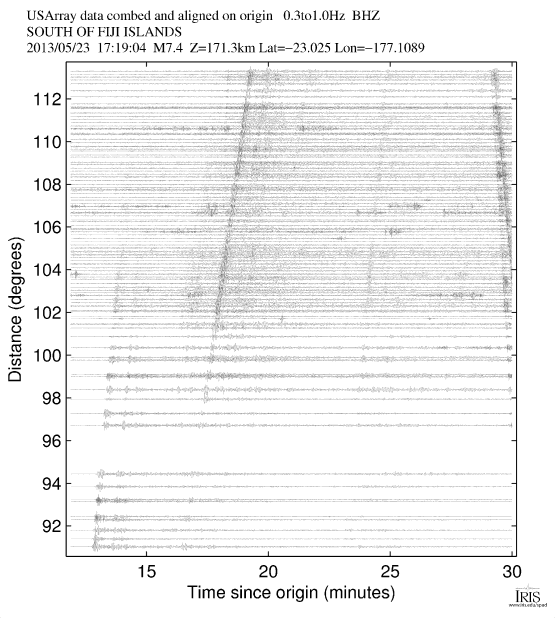 Event Plots for MI 7.4 SOUTH OF FIJI ISLANDS |