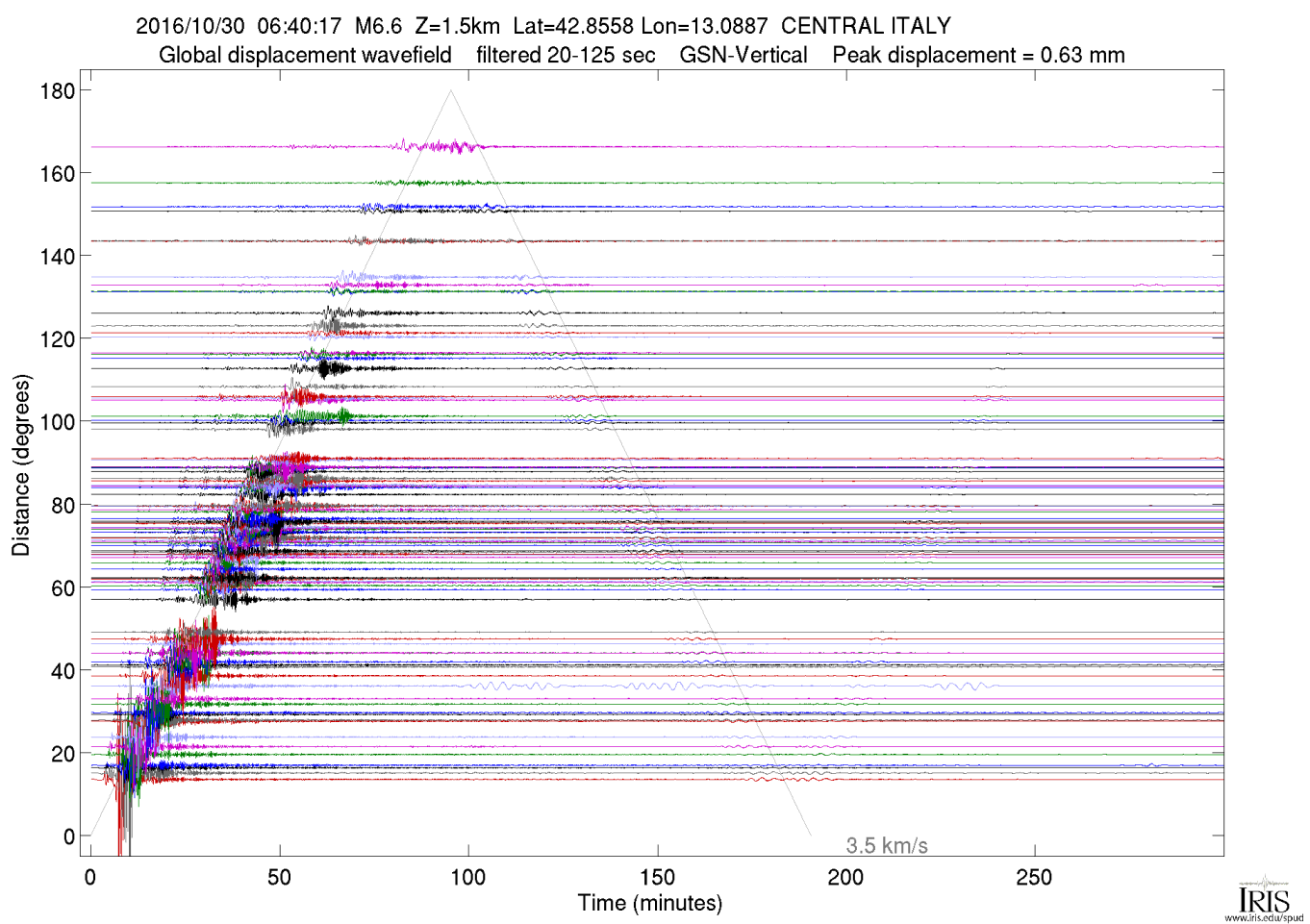The Event Plots product is a suite of plots that are automatically generated following all global M6.0+ earthquakes (M5.0+ for continental US). The plots use all open broadband data available at the IRIS DMC at the time the product was generated. For more information on Event Plots visit the Event Plot product page. |