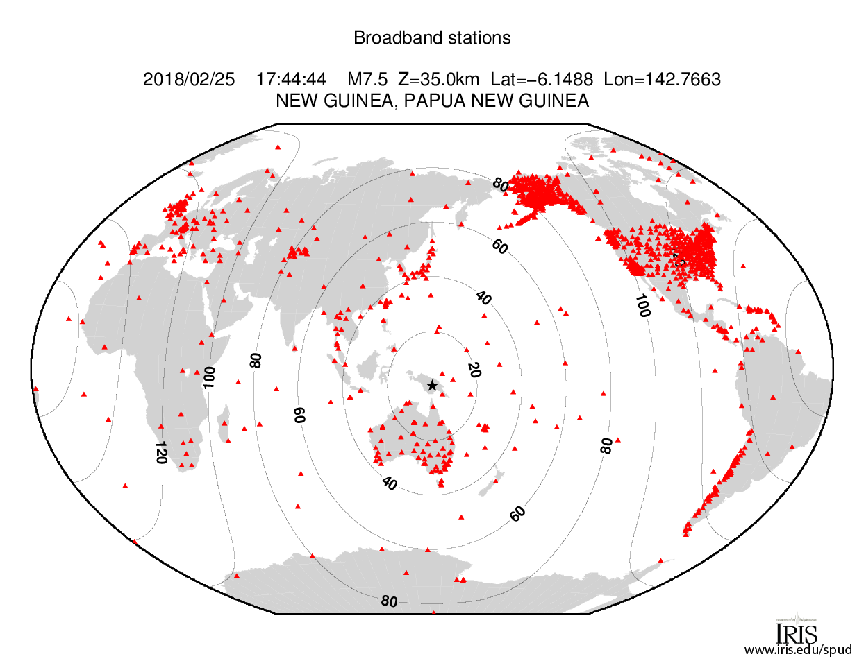 Event Plots for mww 7.5 NEW GUINEA, PAPUA NEW GUINEA |