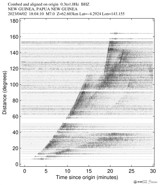 The Event Plots product is a suite of plots that are automatically generated following all global M6.0+ earthquakes (M5.0+ for continental US). The plots use all open broadband data available at the IRIS DMC at the time the product was generated. For more information on Event Plots visit the Event Plot product page. |