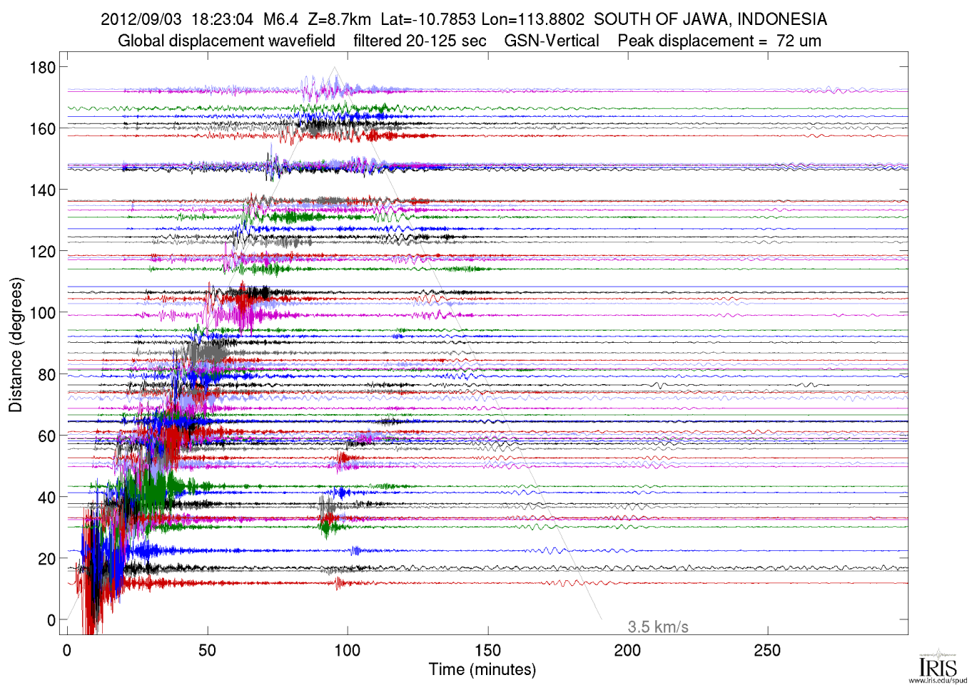 The Event Plots product is a suite of plots that are automatically generated following all global M6.0+ earthquakes (M5.0+ for continental US). The plots use all open broadband data available at the IRIS DMC at the time the product was generated. For more information on Event Plots visit the Event Plot product page. |