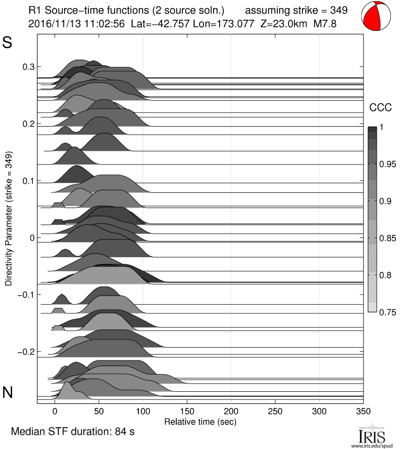 Source Time Function for MWW 7.8 SOUTH ISLAND, NEW ZEALAND |