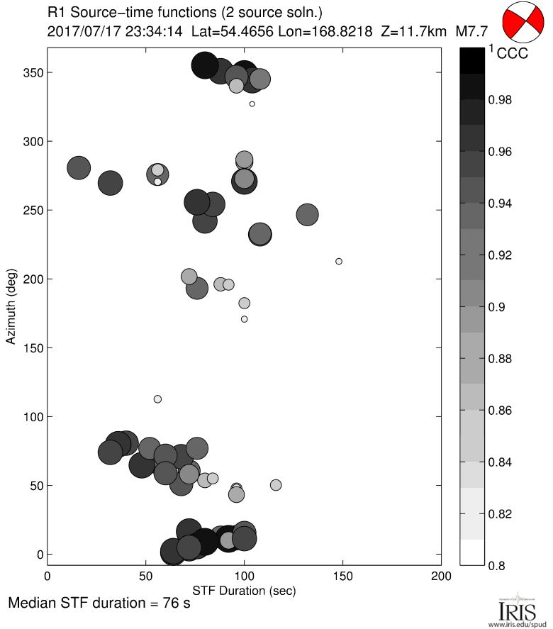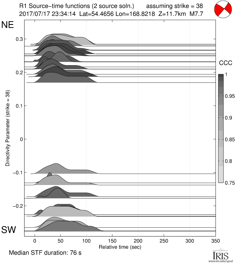If you use Source Time Functions in publications, please cite according to the instructions at:http://ds.iris.edu/ds/products/sourcetimefunction/#citation Acknowledgements:Charles Ammon generously provided the time-domain iterative deconvolution portion of the code used. Luis Rivera generously provided the normal mode synthetic seismogram codes used. Results can be very sensitive to pre-processing, which neither C.A. nor L.R. contributed to. |