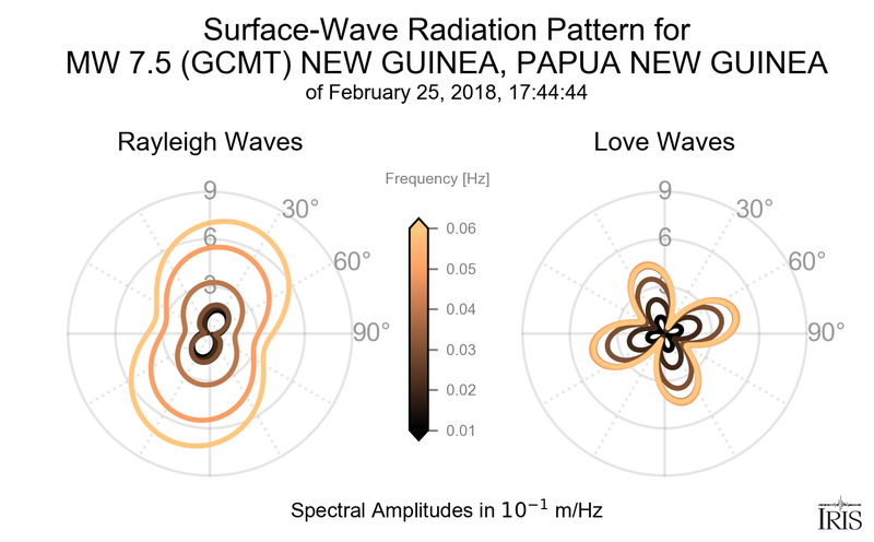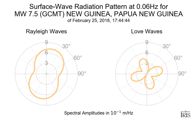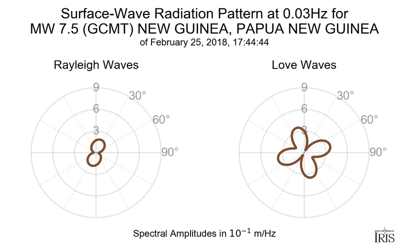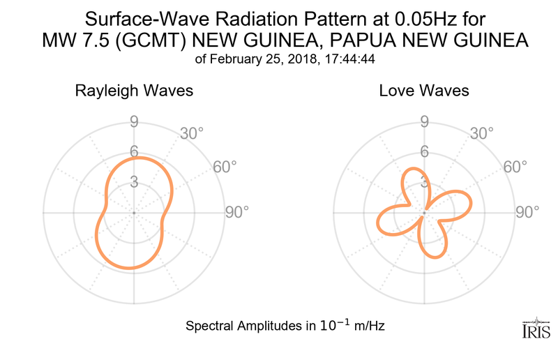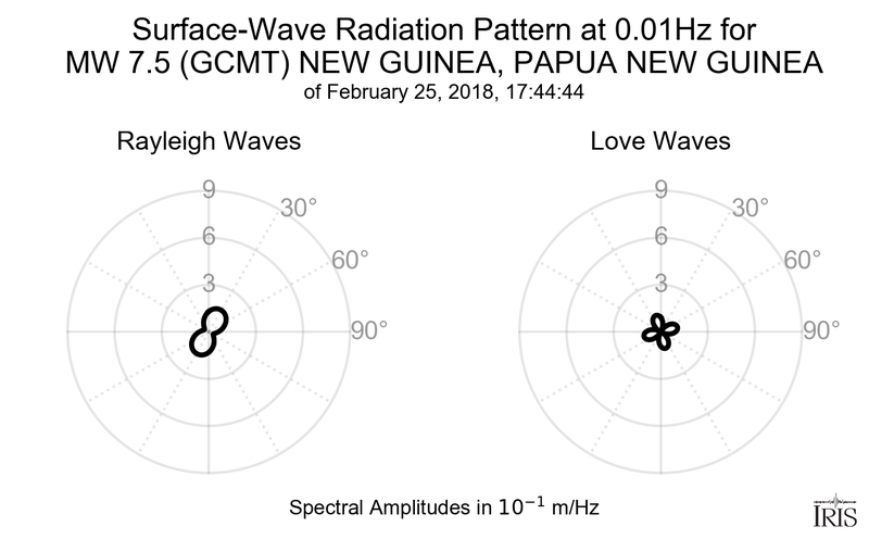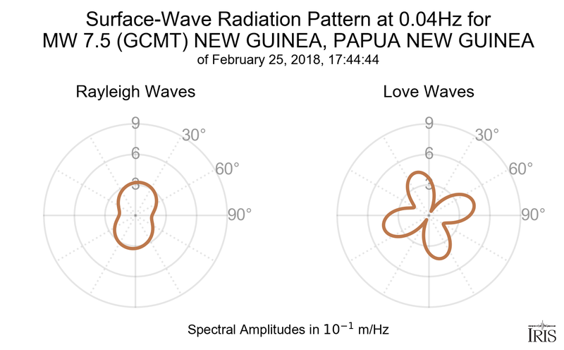 Surface-Wave Radiation Patterns for MW 7.5 NEW GUINEA, PAPUA NEW GUINEA |