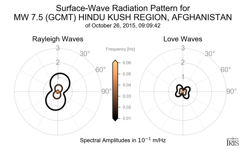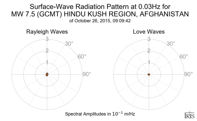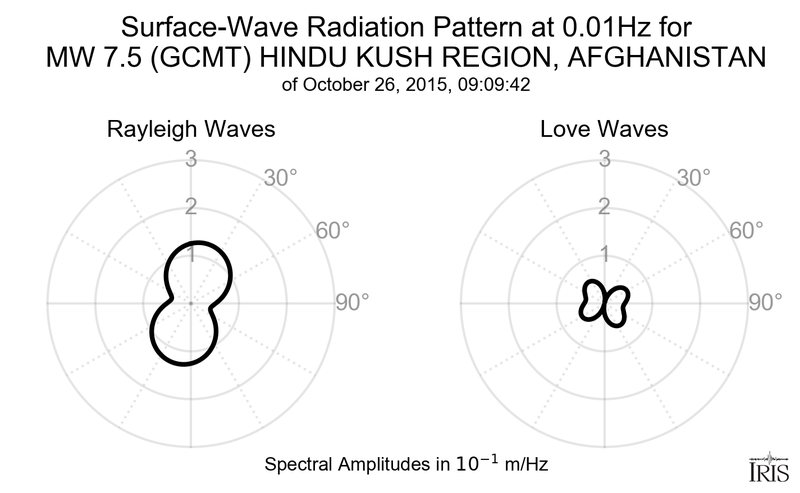 Surface-Wave Radiation Patterns for MW 7.5 HINDU KUSH REGION, AFGHANISTAN |