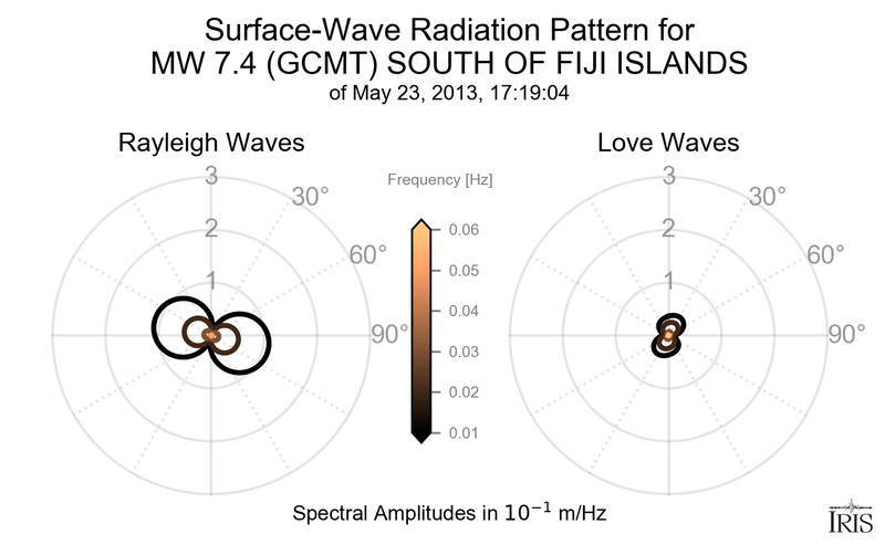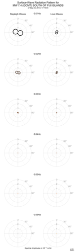 Surface-Wave Radiation Patterns for MW 7.4 SOUTH OF FIJI ISLANDS |