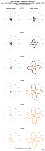 Surface-Wave Radiation Patterns for MW 6.5 ARMENIA-AZERBAIJAN-IRAN BORD REG |