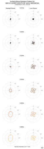 Surface-Wave Radiation Patterns for MW 6.3 SOUTH OF JAVA, INDONESIA |