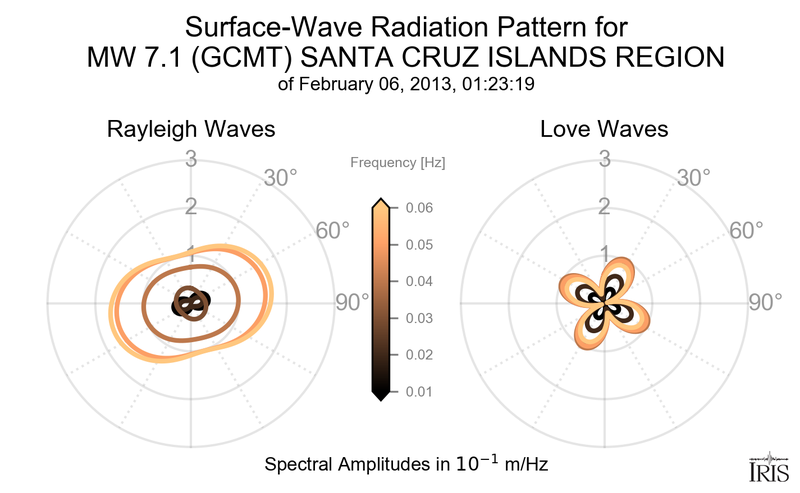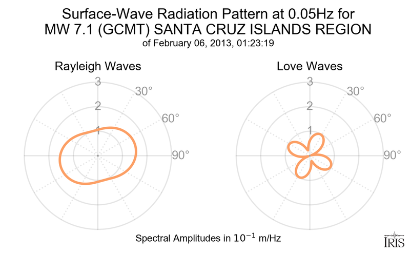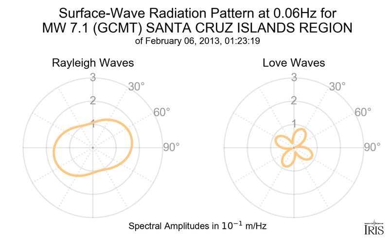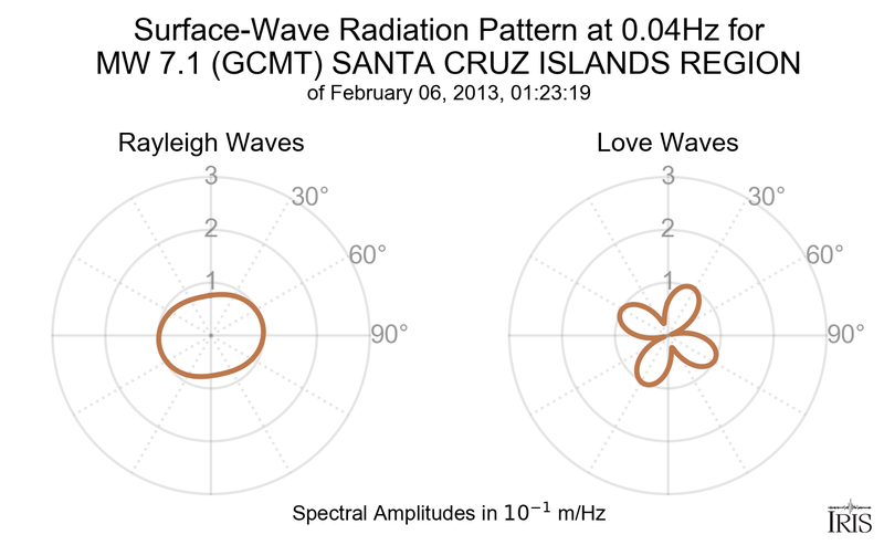Surface-Wave Radiation Patterns for MW 7.1 SANTA CRUZ ISLANDS REGION |