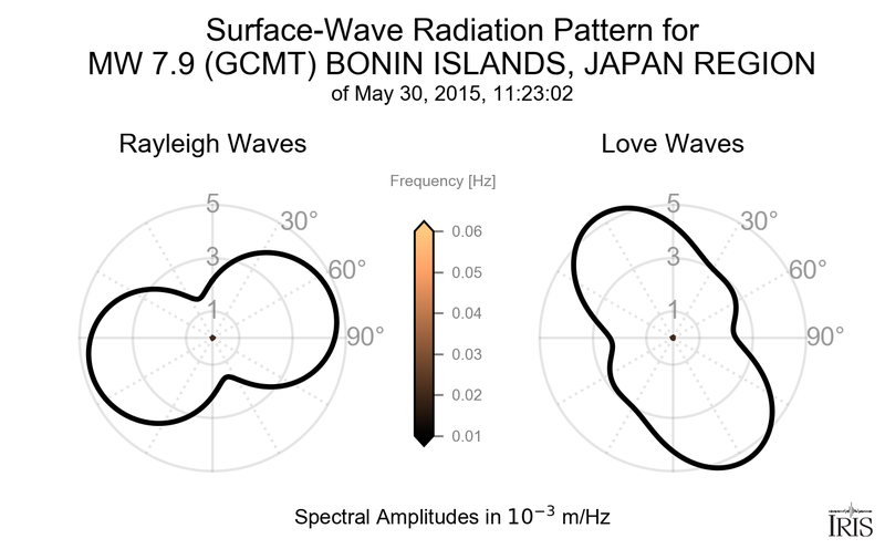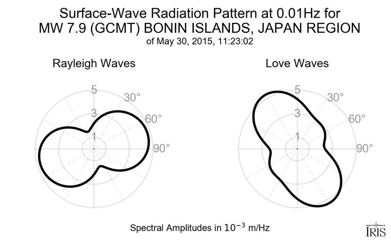 Surface-Wave Radiation Patterns for MW 7.9 BONIN ISLANDS, JAPAN REGION |