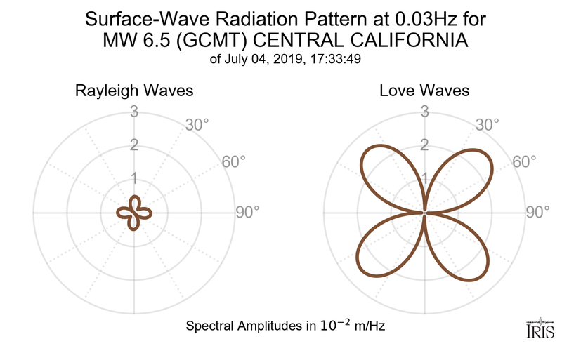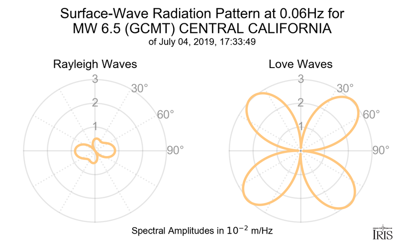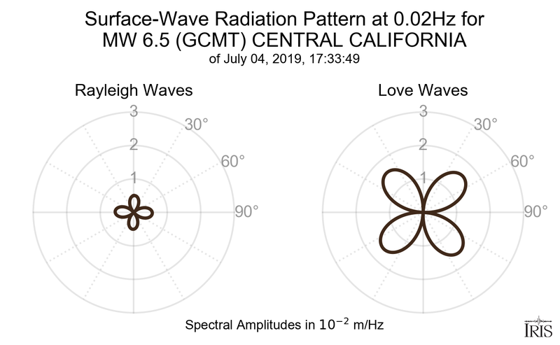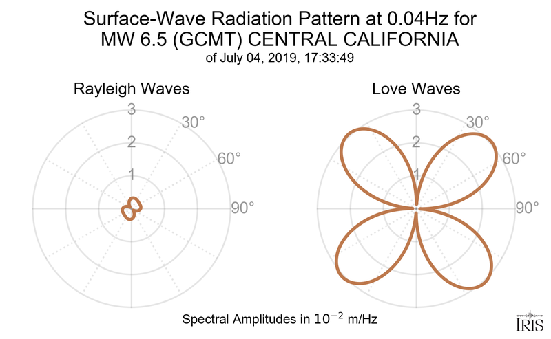 This page shows the surface-wave radiation patterns for the selected event.