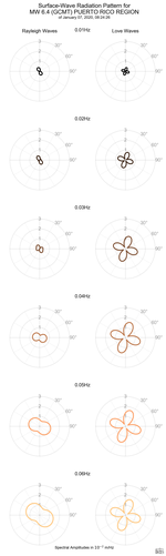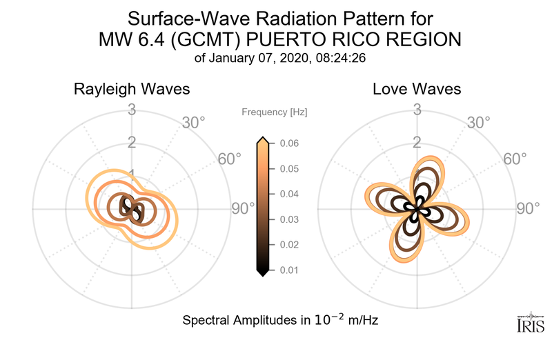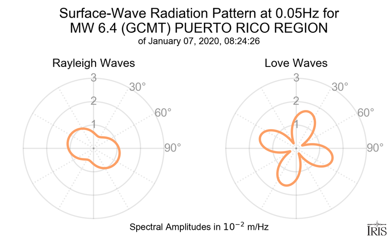 Surface-Wave Radiation Patterns for MW 6.4 PUERTO RICO REGION |