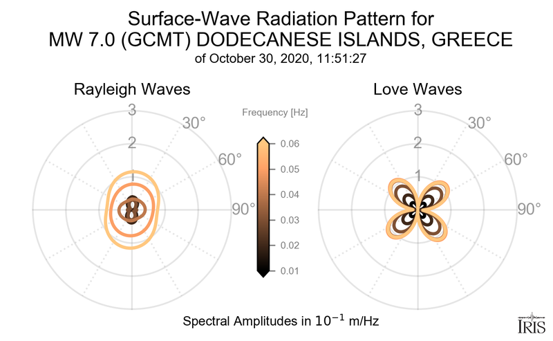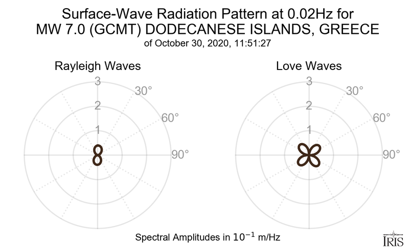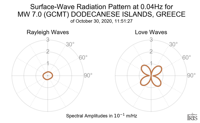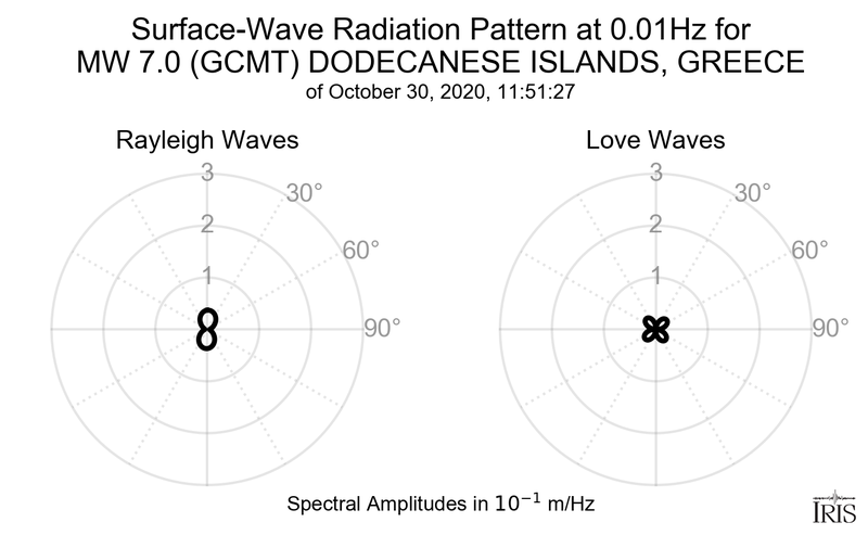 Surface-Wave Radiation Patterns for MW 7.0 DODECANESE ISLANDS, GREECE |