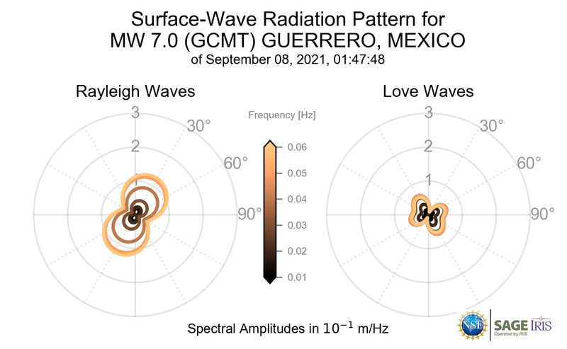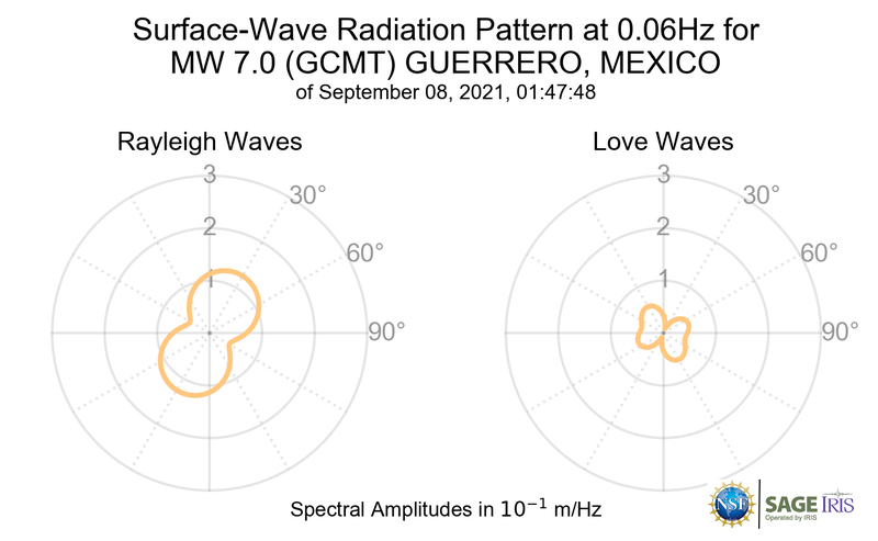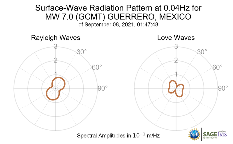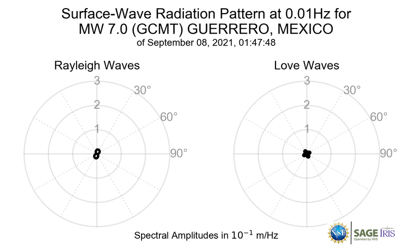 Surface-Wave Radiation Patterns for MW 7.0 GUERRERO, MEXICO |