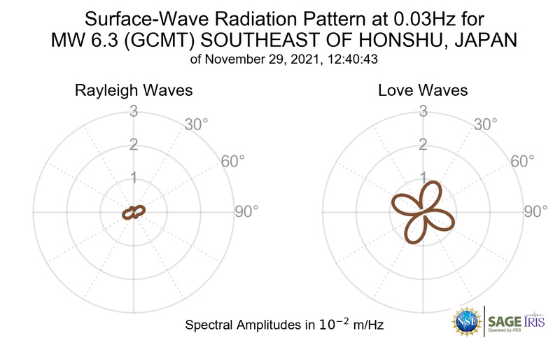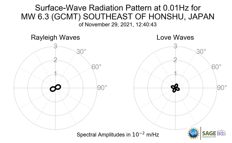 Surface-Wave Radiation Patterns for MW 6.3 SOUTHEAST OF HONSHU, JAPAN |