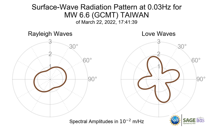 Surface-Wave Radiation Patterns for MW 6.6 TAIWAN |