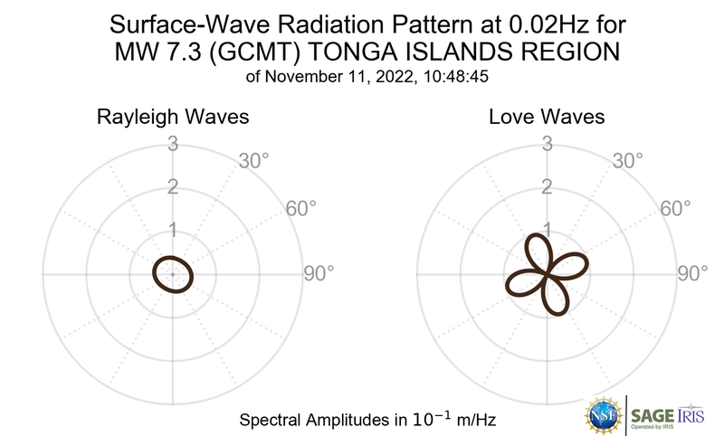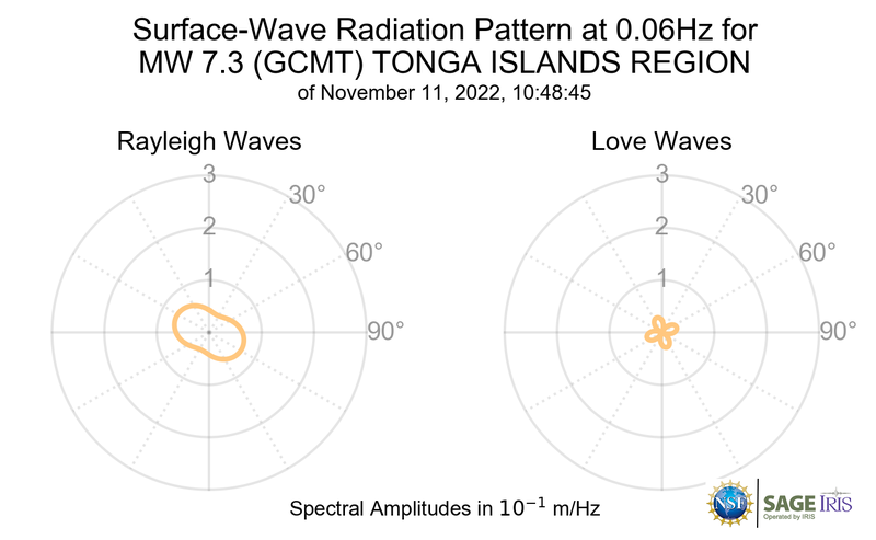 Surface-Wave Radiation Patterns for MW 7.3 TONGA ISLANDS REGION |