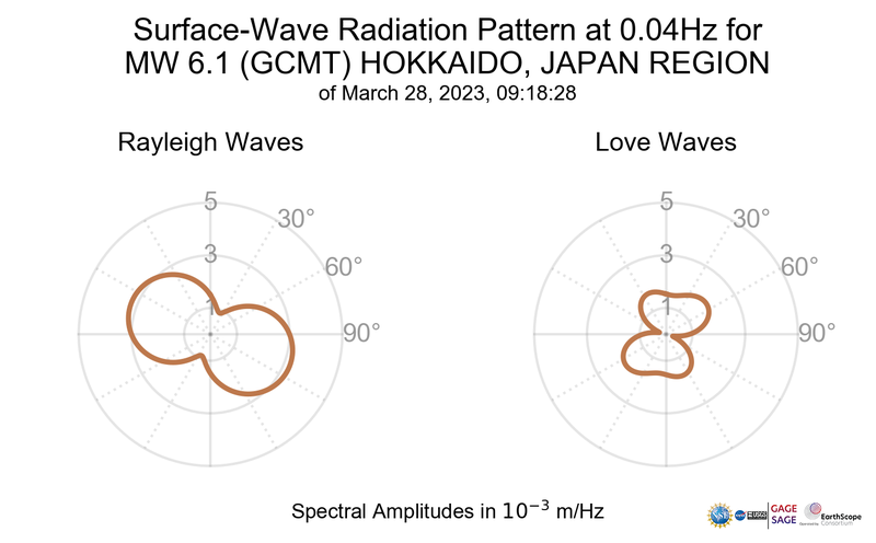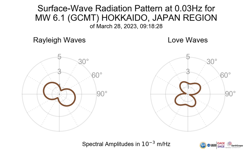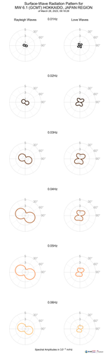 Surface-Wave Radiation Patterns for MW 6.1 HOKKAIDO, JAPAN REGION |