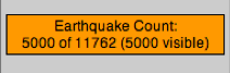 The Earthquake Count shows how many quakes were retrieved from the database, along with the total number of that could have been retrieved (but the limits of Maximum earthquakes setting prevented it). Since zooming and panning can hide some of the earthquakes, the number that are actually visible in the current map view is also given.