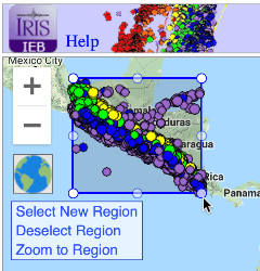 When a region is selected, the events inside it are effectively 'frozen'. If you pan the map away or zoom too close, no events will be visible -- but IEB recognizes this condition and will prompt you what to do.