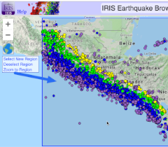 The Interactive Earthquake Browser (IEB) is an interactive map for displaying selections of up to 25,000 seismic event epicenters (normally earthquakes) on a map of the world. There are millions of events to choose from.