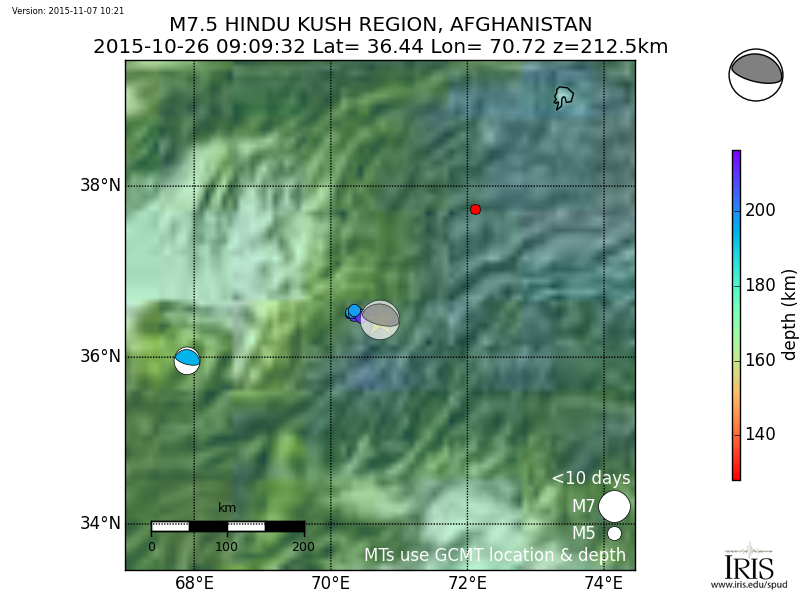 Aftershocks for MWW 7.5 HINDU KUSH REGION, AFGHANISTAN |
