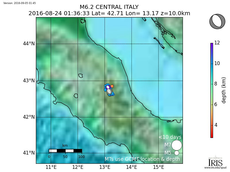 Aftershocks for MWP 6.2 CENTRAL ITALY |