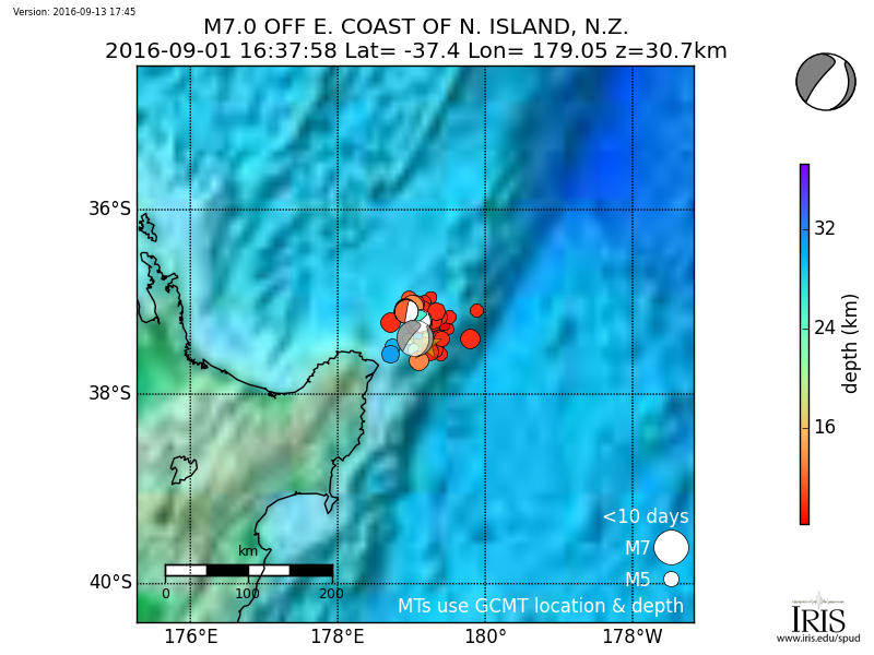 Aftershocks for MWW 7.1 OFF E. COAST OF N. ISLAND, N.Z. |