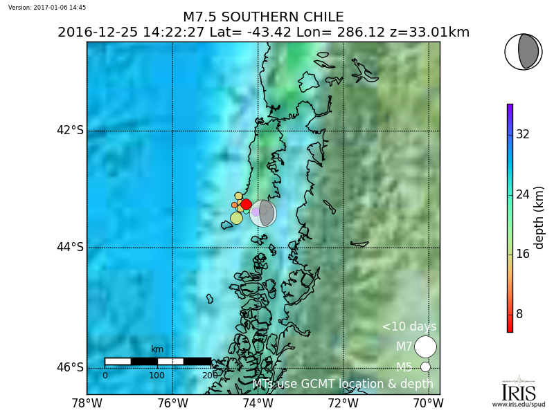 Aftershocks for Mwp 7.7 SOUTHERN CHILE |
