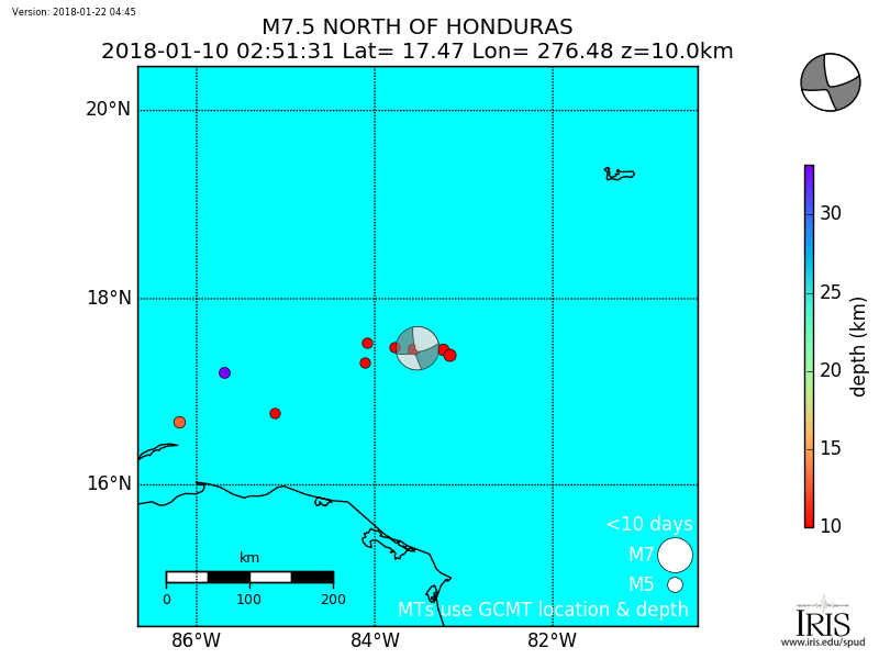 Aftershocks for mww 7.6 NORTH OF HONDURAS |