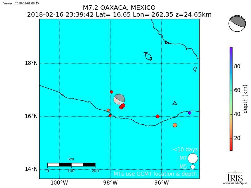 Aftershocks for mww 7.2 OAXACA, MEXICO |