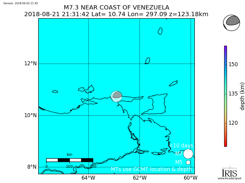 Aftershocks for Mww 7.3 NEAR COAST OF VENEZUELA |