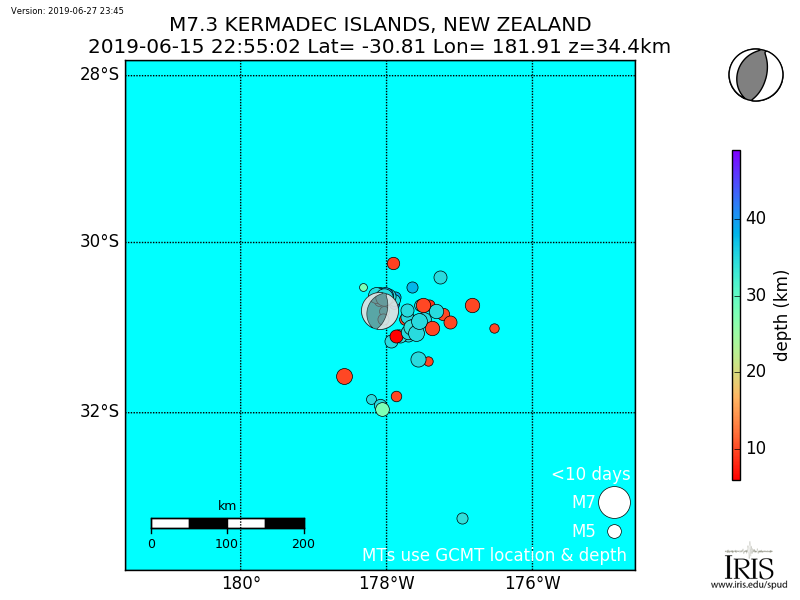 Aftershocks for Mww 7.2 KERMADEC ISLANDS, NEW ZEALAND |