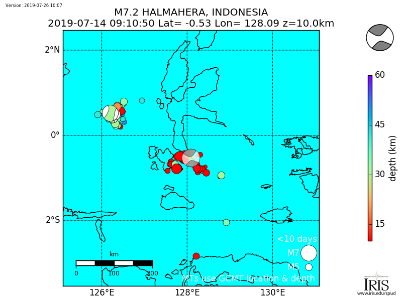 Aftershocks for Mww 7.3 HALMAHERA, INDONESIA |