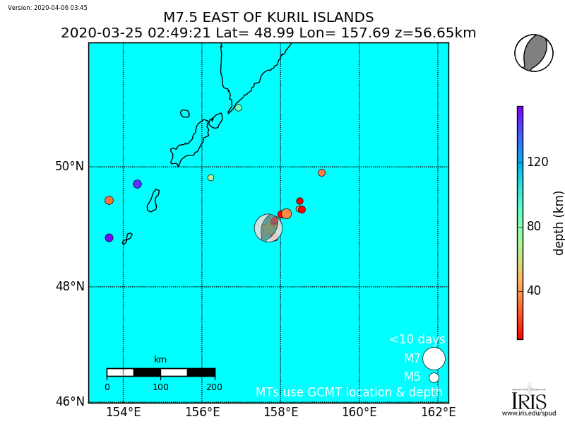 Aftershocks for Mww 7.5 EAST OF KURIL ISLANDS |