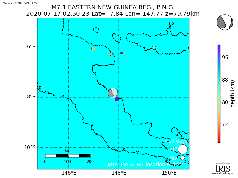 Aftershocks for mww 7.0 EASTERN NEW GUINEA REG., P.N.G. |