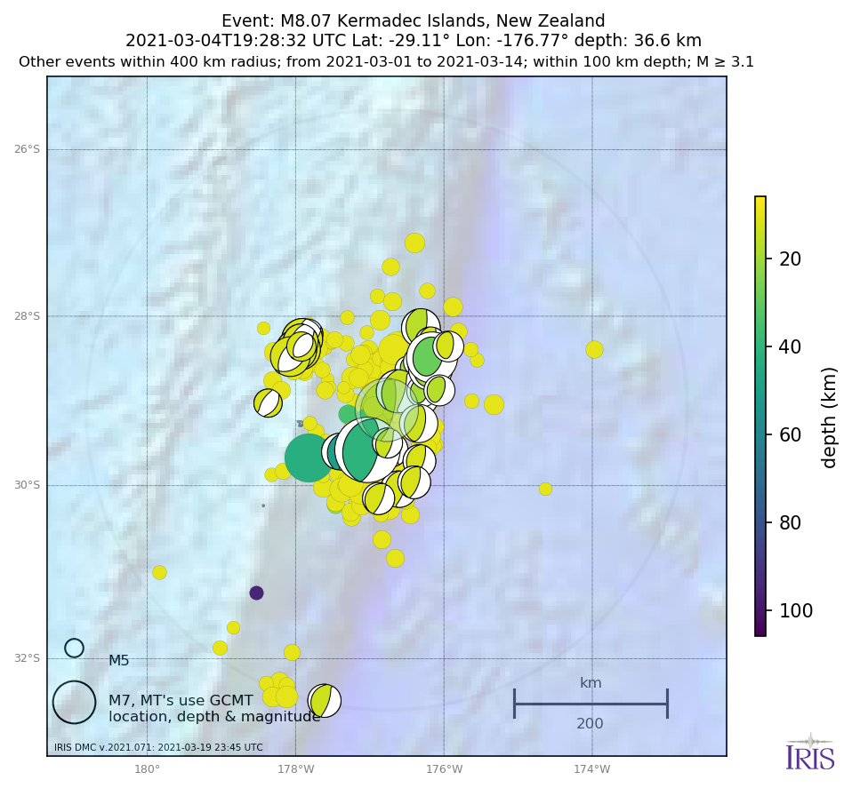 Aftershocks for mww 8.1 KERMADEC ISLANDS, NEW ZEALAND |