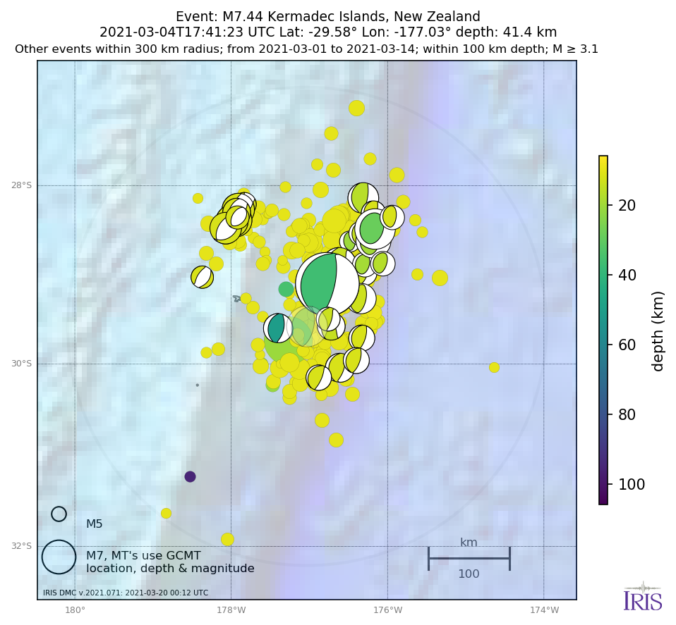 Aftershocks for mww 7.4 KERMADEC ISLANDS, NEW ZEALAND |
