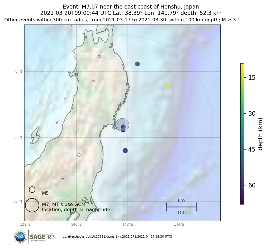 Aftershocks for Mww 7.0 NEAR EAST COAST OF HONSHU, JAPAN |