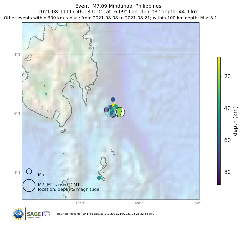 Aftershocks for Mww 7.1 MINDANAO, PHILIPPINES |