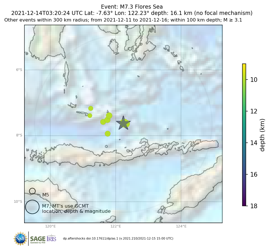 Aftershocks for mww 7.3 FLORES SEA |