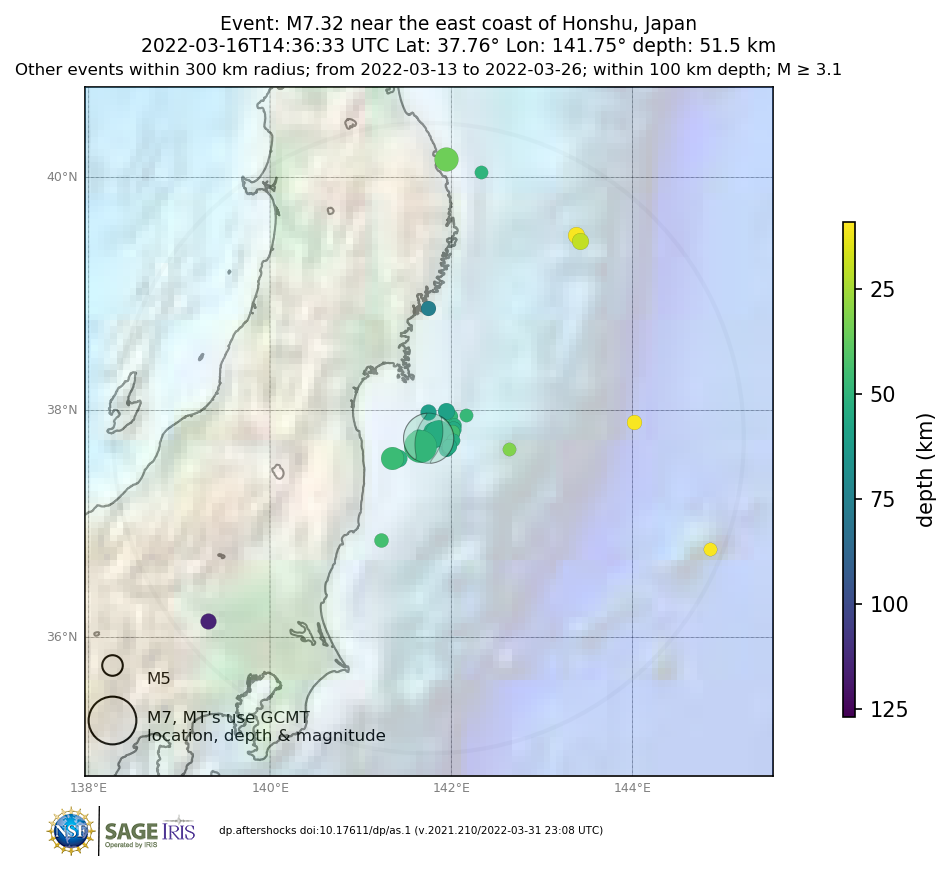 Aftershocks for mww 7.3 NEAR EAST COAST OF HONSHU, JAPAN |