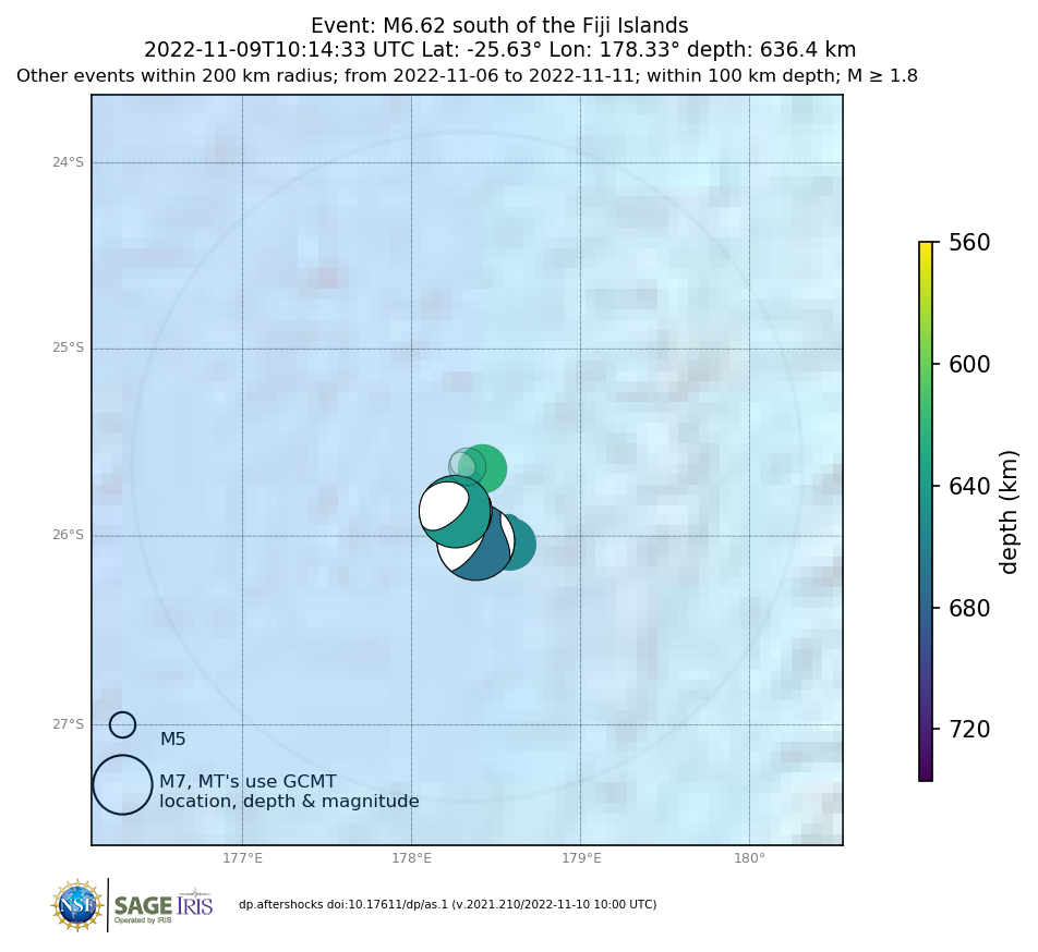 Aftershocks for Mww 7.0 SOUTH OF FIJI ISLANDS |