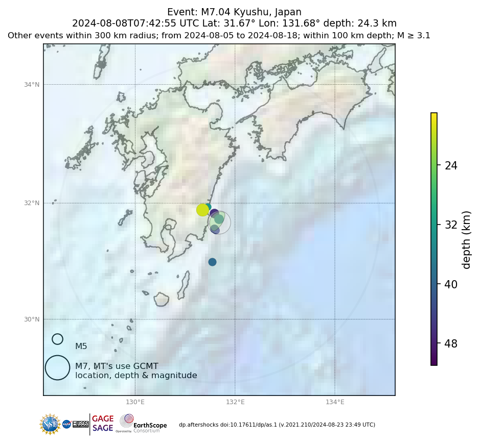 Aftershocks for mww 7.1 KYUSHU, JAPAN |